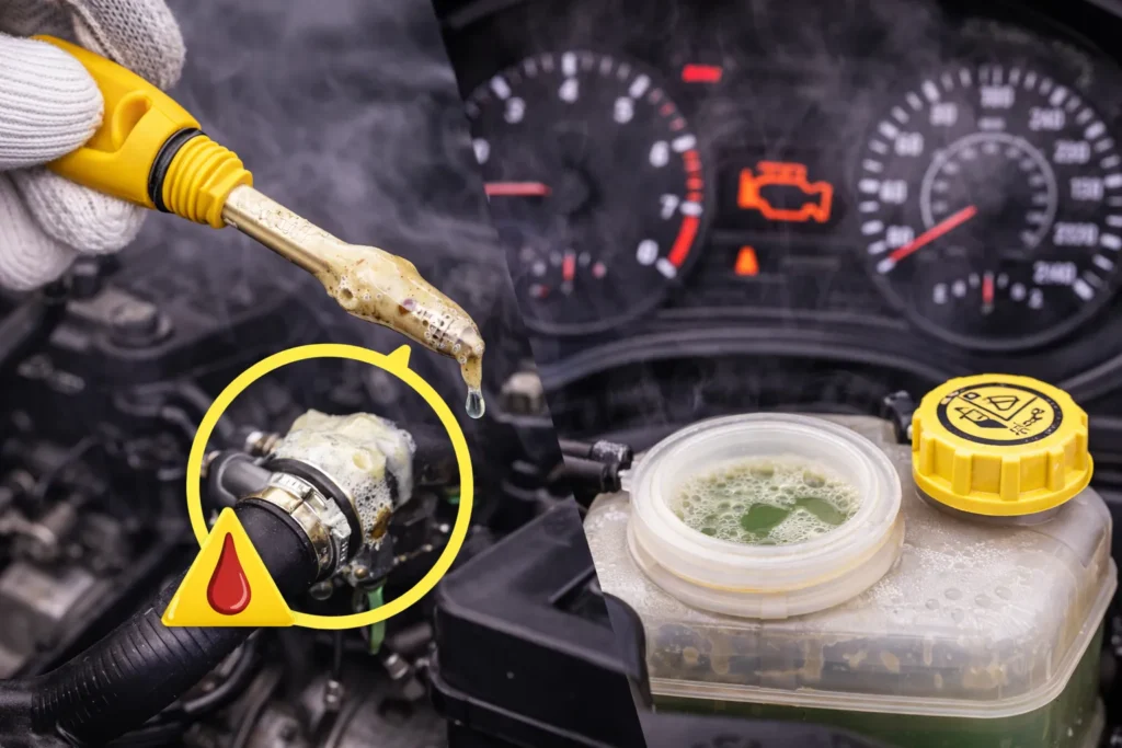 - Milky residue on the oil dipstick