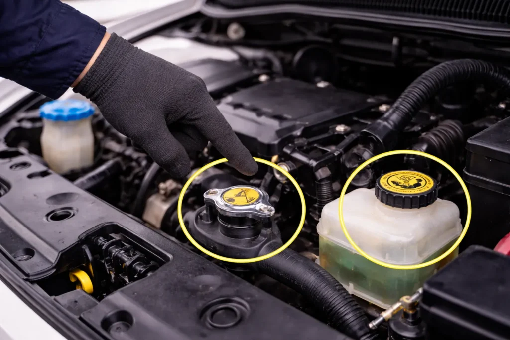 Step 1: Locate the Radiator Cap or Coolant Reservoir Cap