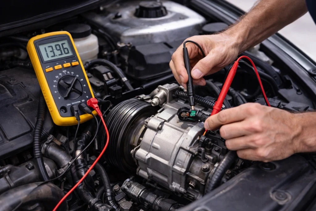 If the compressor clutch does not engage, electrical testing is necessary. A multimeter helps confirm whether power is reaching the compressor or if the issue is elsewhere in the circuit.